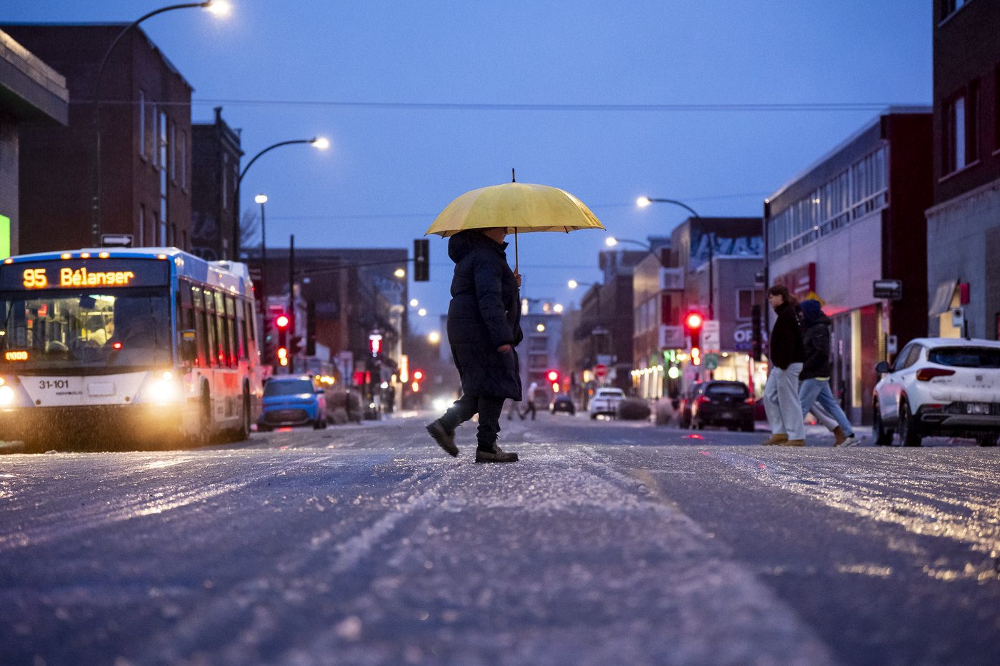 À Montréal, le Réseau express métropolitain (REM) était toujours à l'arrêt au lever du jour entre les stations Brossard et Gare Centrale, en raison d'une accumulation «exceptionnelle de verglas sur la caténaire sur une portion du réseau».